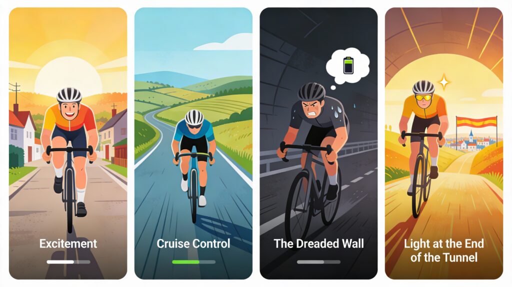 Typical Phases of a Long Day Biking
